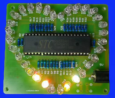 ![]() 欢迎选购!请点击图片在新窗口打开,并将图片最大化后再看!原理图上元件位置和实物图元件位置一样。 参考制作视频点击: 单片机七彩心形流水灯制作视频https://www.bilibili.com/video/