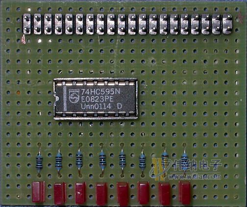 74HC595具有一个8位串行输入并行输出的移位寄存器和一个8位输出锁存器。 应用电路图: