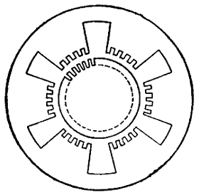 三、双三拍通电方式的基本原理 θ=360°/Zr×m 式中Zr是转子齿数;m是运行拍数。 一般步进电动机最常见的步距角是3°或1.5°。由上式可知,转子上不只4个齿(齿距角90°),而有40个齿(齿距角为9°)。为了使转子齿与定子齿对齐,两者的齿宽和齿距必须相等。因此,定子上除了6个极以外,在每个极面上还有5个和转子齿一样的小齿。步进电动机的结构图如图4所示。