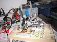 前期遇到的问题:由于目标是微型,所以想把它做的尽量的小,所以选材很麻烦。我遇到两个比较大的困难。 1.伺服电机个头比步进电机的相对要小些,但费用比较高,且不容易控制。 2.还有CNC三维运动需要丝杠的传动,这么微小的丝杠恐怕没有吧,最初想通过皮带传动代替丝杠传动,慢速可以实现,但精度不高,速度过快后,皮带打滑,控制容易出现问题。 这两个问题困扰着我,后来想到软驱里有个很小的步进电机,而且还带有一套传动系统。如果可以把这一整套取出来的话上面的两个问题就很容易就可以解决了。控制方面也不会有问题。