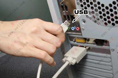 2、将发射器的USB线插入电脑的任意一个USB插孔。