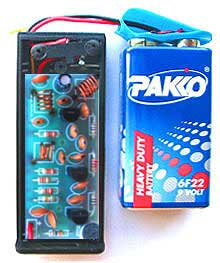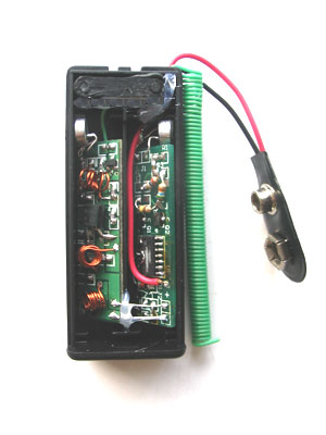 3、打开调频收音机,或者带有收音功能的手机、MP3,将接收频率调到标签所标的频率值上即可听到清晰的高保真立体声音乐了。 1、作为防盗系统使用,一旦有区域内有声响,立即启动监听和FM调频发射电路,同时远端的自动接收机(或FM收音机)开启,立刻监听现场的细微动静。 2、当环境声响波动时,才启动监听和FM调频发射电路,平时发射电路不工作,耗电极微,电池可以使用很长时间。 3、发射距离远。采用9V高电压供电,直线发射距离可达300米。 4、外观精美,背面可用双面胶纸粘贴在桌子底下下或者窗边、墙上,安装简单快捷。 5、可自由定制和调校发射频率。如果不想让普通收音机收到信号,可以调校频率避开普通FM广播频段(88Mhz~108Mhz),然后使用特殊接收机接收。 ![]() ![]() ![]() 工作电压:9V 主要应用: