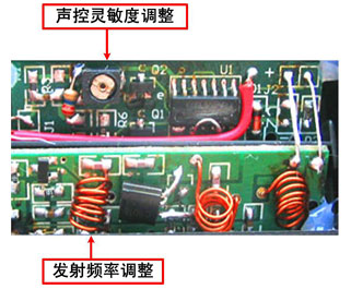 4、将发射模块远离接收机,再微调接收频率使音质最佳,如果音量开大后还有啸叫声,说明模块离接收机还不够远,这时候需要用耳机来监听。 ![]()