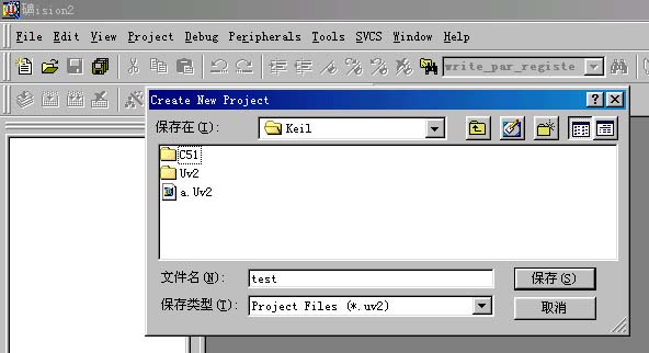 2)然后选择你要保存的路径,输入工程文件的名字,比如保存到keil目录里,工程文件的名字为test.