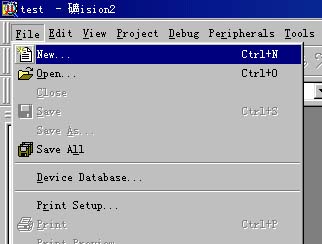 4)这时要新建一个源程序文件,建立一个汇编或c文件,如果你已经有源程序文件,可以忽略这一步.点击菜单File->New: