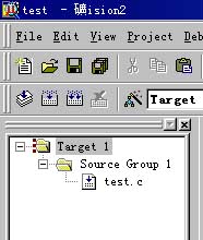 10)这时在source group 1 里就有test.c文件,如图: