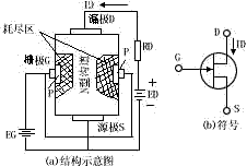图1、N沟道结构型场效应管的结构及符号