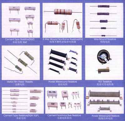 1. 线绕电阻: 通用线绕电阻;精密线绕电阻;功率型线绕电阻;高频线绕电阻。