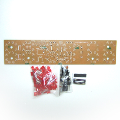 单片机数字钟套件元件清单:电路板1块(236×50mm),烧好程序的MCU芯片1个,20脚的IC座1个,高亮发光二极管88个(有圆灯和2*5的方灯,方灯要贵1元),晶振1个,开关3个,三极管1个,蜂鸣器1个,整流二极管4个,7805稳压集成块1个,几个电阻和电容,原理图说明纸1张。