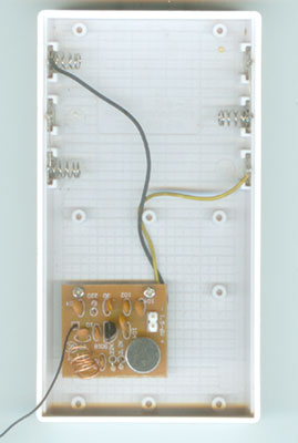 本电路板装在盒子中,有配套的螺丝孔位固定,盒子可以安装电池,这样安装好后,频率不容易受漂移,频率稳定性好,可以用作无线话筒和窃听器等用途。