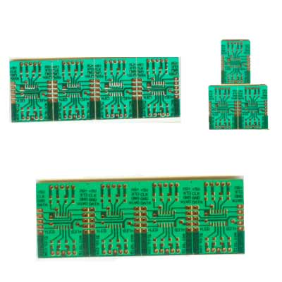 1寸数码管显示板(光板),每片0.5元。该板主要为单片机端口扩展用的,可以1级到多级的连接使用(本站曾经使用过四十多级给客户开发过产品)。使用1寸红色超亮共阳数码管,一个笔画由一个LED组成,所以+LED电源取5V即可。电阻和74HC164为贴片元件,体积小巧。板上有四级连接在一起,其中各级间已经预留有开口,如果不用四级,可以分别掰开使用(下面的图为已经掰开了一级),如果要使用四级以上的,也可以很方便的首尾相接起来使用。