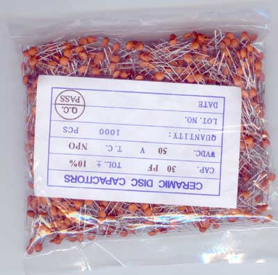 瓷片电容1元50个一种,每种最低50个起售,0.02元/个,1元一种,如果需要购买多个规格一定要更改数量,并在备注中注明你要的容量规格,这样本站人员就不会弄错。为了方便本站人员的工作以及大家的需求。下面有37种规格供大家选择,可任意选择一种或多种出售,选择多种的朋友只需更改数量,然后在备注中注明需要的容量,这样本站人员就会根据你的需要而分配。本站已装配好50个一种型号一袋,少余50个一袋多种规格的本站没办法处理。元器件不值钱,可是人工工作量大,现在人工很值钱,这个大家都知道,请大家多多谅解本站。