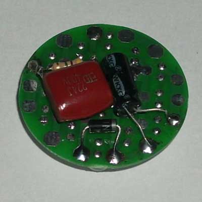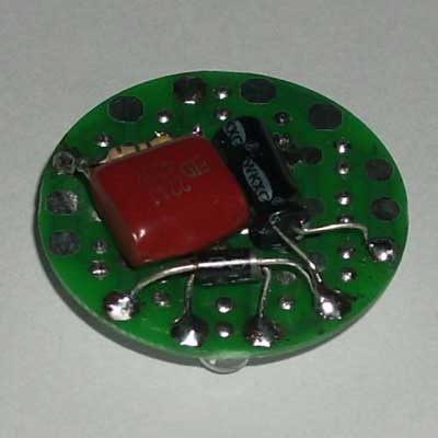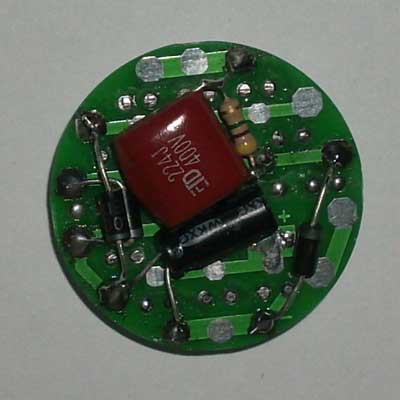LED剪脚请贴紧板剪脚,只管贴紧线路板剪脚,因为是双面板,整个铜孔都能导电!先装大电容,注意在板内2-3mm,要保证能放进灯杯。