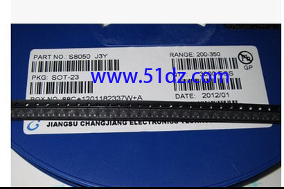 贴片三极管S8050 封装:SOT-23,10个1元。 8550上面印字 2TY ,8050上面印字 J3Y,贴片的全部是BCE,三角形尖向上,最左边的为B极,上边为C极、右边为E极,不管是SOT-23封装的还是SOT-89封装的都是一样的。放到品字形状,顺序为B(左面基级). C(上面集电级).E(右面发射级) 。