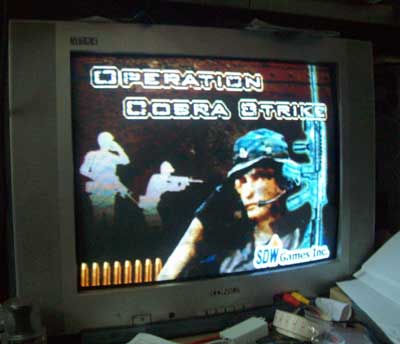 开始战斗了,大家看到我的枪对准了一个敌人,电视左下角是我的子弹,右边是机枪、死欧枪、导弹、火箭四种武器选择(我自己是这样理解的)。