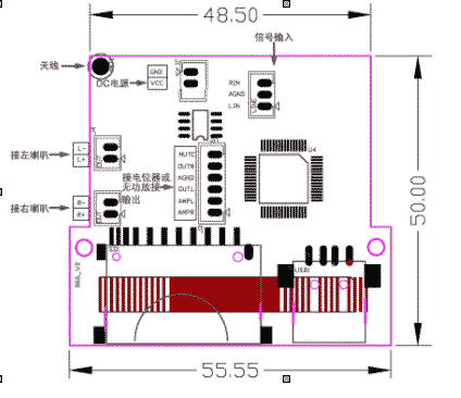 本款 模块是带FM收音、曲号显示的,更有带歌词显示的,还带功放等,是一款比较完美的模块。