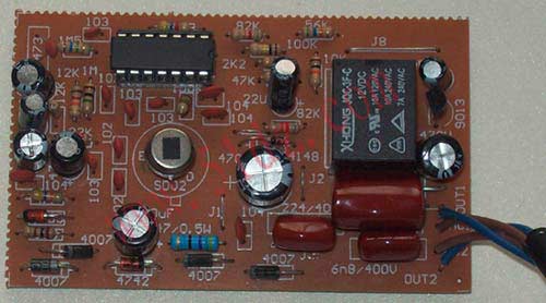 热释电人体红外感应开关套件:外壳,元件,电路板,原理图及原理说明,安装说明等。采用高灵敏度红外探头,探测距离最远可达10米左右。本电路由热释电红外传感与菲涅尔透镜组成红外探测信号输入电路,一级低通同相放大器IC1A,一级低通反相放大器IC1B,一级比较器IC1C,一级单稳态延时器IC1D以及输出驱动和继电器控制电路组成。热释电红外传感器受到触发时,输出0.1-10Hz幅度不超过1MV的超低频脉冲,两个低通放大器组成低频带通放大器,其带宽为相端,使IC1D输出低电平,继电器工作。当传感器输出信号消失后,IC1C的输出脚恢复高电平,电源通过RP1向C9充电,充电过程使继电器保持吸合一段时间,直至充电电压大于比较电压,调节RP1可改变继电器工作时间。