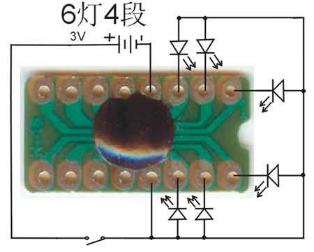 6灯4段闪灯芯片循环闪烁,工厂生产多种玩具,利用这些芯片,品种多多,芯片里固化了不同的程序,给人也有不同的感应作用。