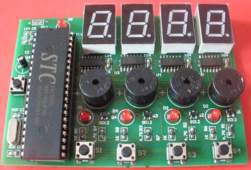 模拟呼叫系统套件: 模拟一个病房有4个床位,哪个病人要呼叫可以按键,相应蜂鸣器响,数码管显床位号,指示灯亮。这里主要想用其它 I/O 口模拟串口显示,这是单片机编程的关键。本套件是贴片元件和插件元件都有用到,本套件提供原理图,安装图,源程序,资料,是学习,毕业设计,单片机应用首选产品