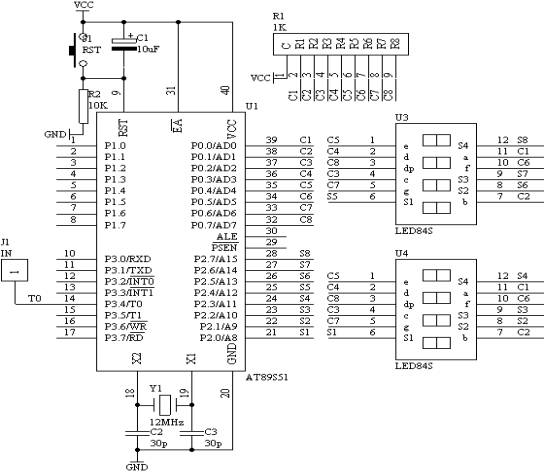 利用AT89S51单片机的T0、T1的定时计数器功能,来完成对输入的信号进行频率计数,计数的频率结果通过8位动态数码管显示出来。要求能够对0-250KHZ的信号频率进行准确计数,计数误差不超过±1HZ。