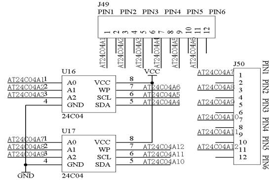 为了适应新技术的需要,增加了2路I2C总线接口,适用8脚的I2C总线芯片,左边的“PIN1 PIN2 PIN3 PIN4 PIN5 PIN6”与上面的接口连接,右边的“PIN1 PIN2 PIN3 PIN4 PIN5 PIN6”与下面的接口连接;具体的电路原理图如图1.21所示: