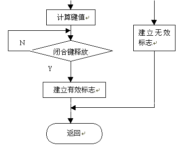 在每组行输出时读取P1.0-P1.3,若全为“1”,则表示为“0”这一行没有键闭合,否则有键闭合。由此得到闭合键的行值和列值,然后可采用计算法或查表法将闭合键的行值和列值转换成所定义的键值