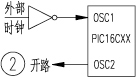 在LP、XT和HS这三种振荡器方式下,各种PIC系列微控制器芯片既可以用集成在内部的振荡器,也可以接受外部输入的时钟源或外接晶体振荡器。若用外部时钟源或外接晶体振荡器,可把外部振荡器输出接芯片的OSC1/CLKIN引脚,此时OSC2/CLKOUT引脚开路即可。图2是外接时钟源的形式,外部晶体独立的振荡器与图2相似。