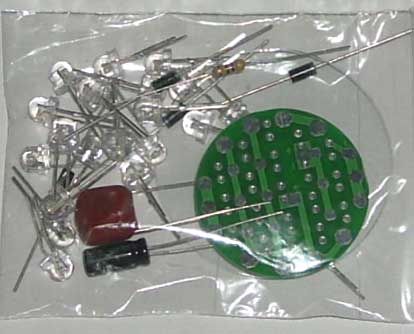 装好灯的效果,注意,极性要装对,横成行,斜成线,布局美观。安装时请注意焊接温度不要过高,焊接时间不要太长,发光二极管是很容烫坏的。焊好固定后,就不要东摇西搬发光二极管了,如果发现没有装正,应用电烙铁将引脚焊锡熔化后再校正位置,还是一句话,注意控制温度,如果装好后有LED不再发光或者发光不均匀的情况,肯定是焊接过程中导致的损坏。